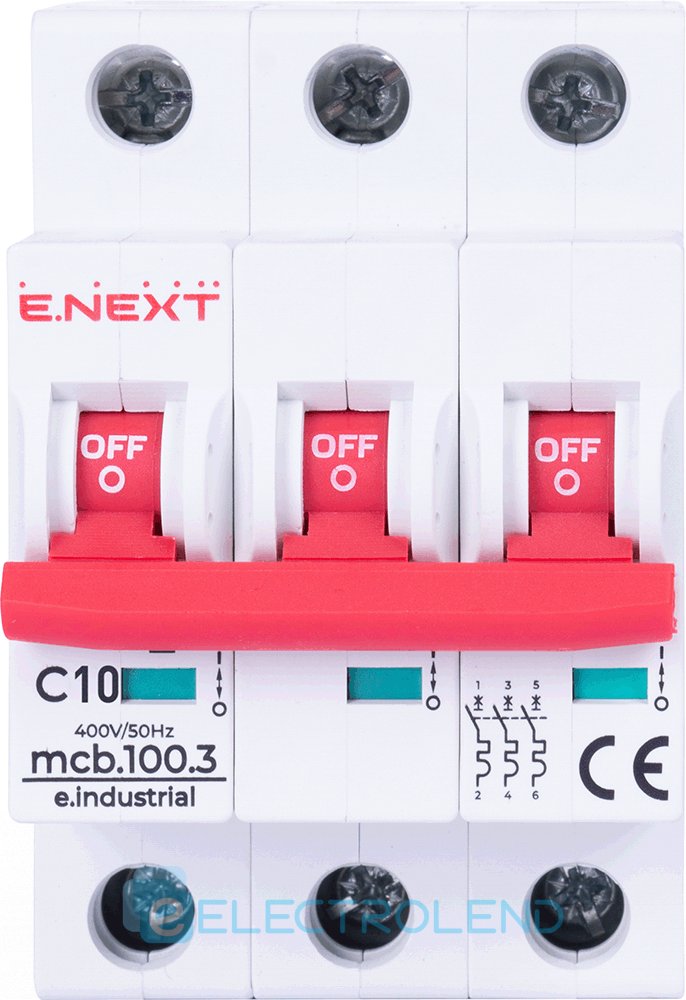 I0180020 Модульный автоматический выключатель e.industrial.mcb.100.3.C10, 3 р, 10А, C, 10кА