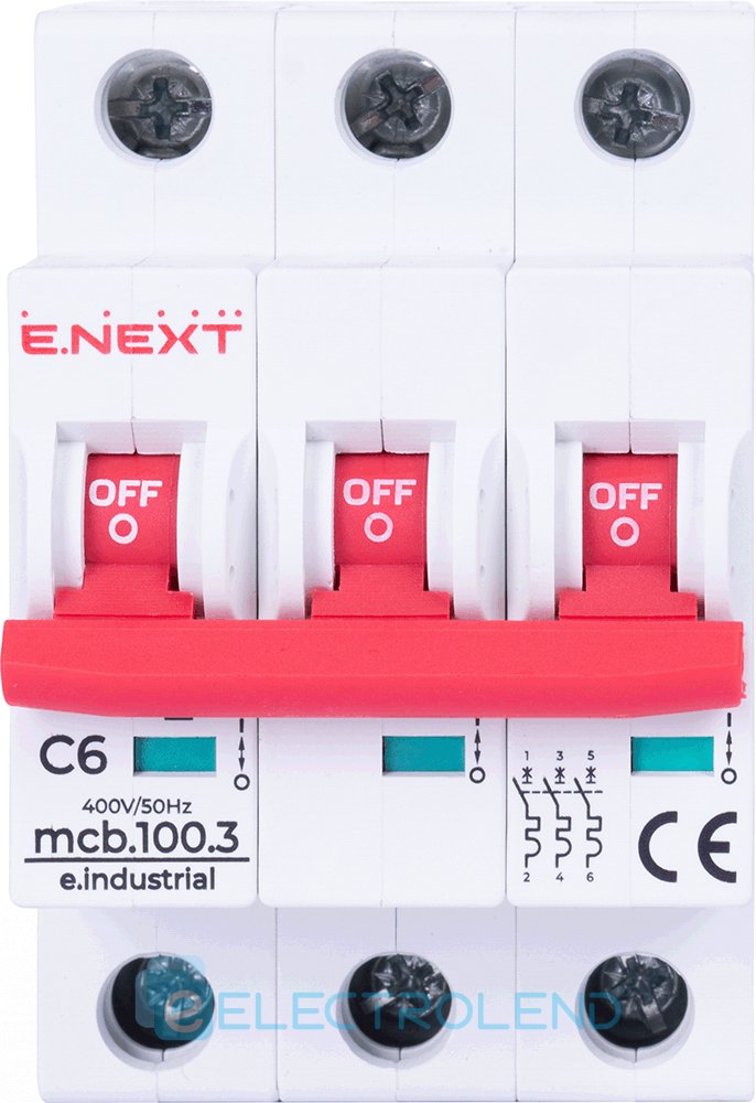 I0180019 Модульный автоматический выключатель e.industrial.mcb.100.3.C6, 3 р, 6А, C, 10кА