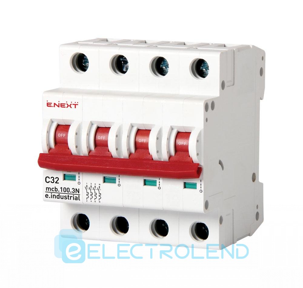 I0190015 Модульный автоматический выключатель e.industrial.mcb.100.3N.C32, 3р+N, 32А, C, 10кА