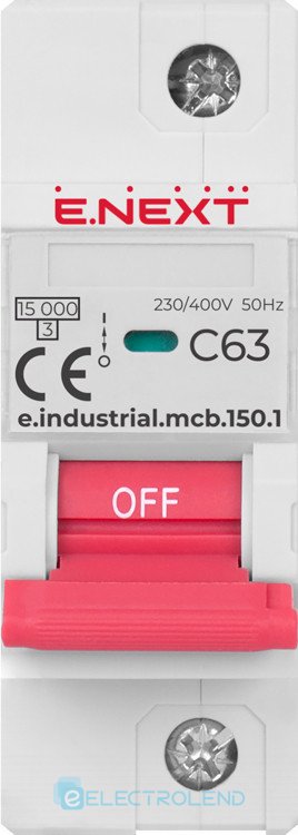 I0630038 Модульный автоматический выключатель e.industrial.mcb.150.1.C63, 1р, 63А, C, 15кА