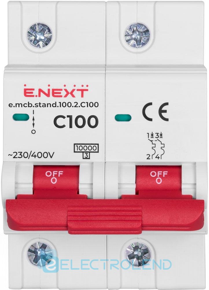 S002210 Модульный автоматический выключатель e.mcb.stand.100.2.C100, 2р, 100А, C, 10кА