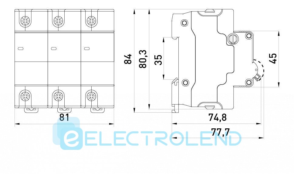 S026003 Модульный автоматический выключатель e.mcb.stand.100.3.D100, 3р, 100А, D, 10кА