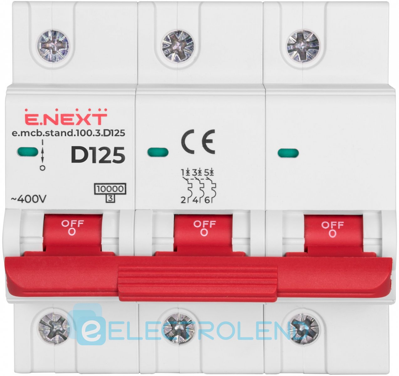 S026004 Модульный автоматический выключатель e.mcb.stand.100.3.D125, 3р, 125А, D, 10кА