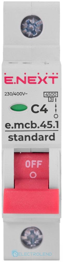 S002004 Модульный автоматический выключатель e.mcb.stand.45.1.C4, 1р, 4А, C, 4,5 кА
