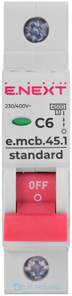 S002006 Модульный автоматический выключатель e.mcb.stand.45.1.C6, 1р, 6А, C, 4,5 кА