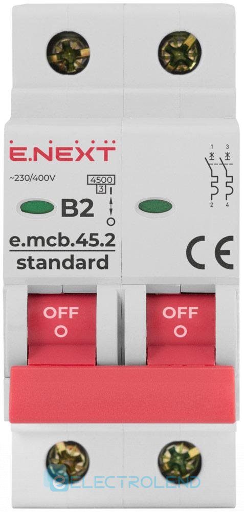 S001033 Модульный автоматический выключатель e.mcb.stand.45.2.B2, 2р, 2А, В, 4,5 кА