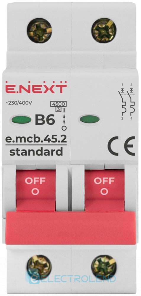 S001015 Модульный автоматический выключатель e.mcb.stand.45.2.B6, 2р, 6А, В, 4,5 кА