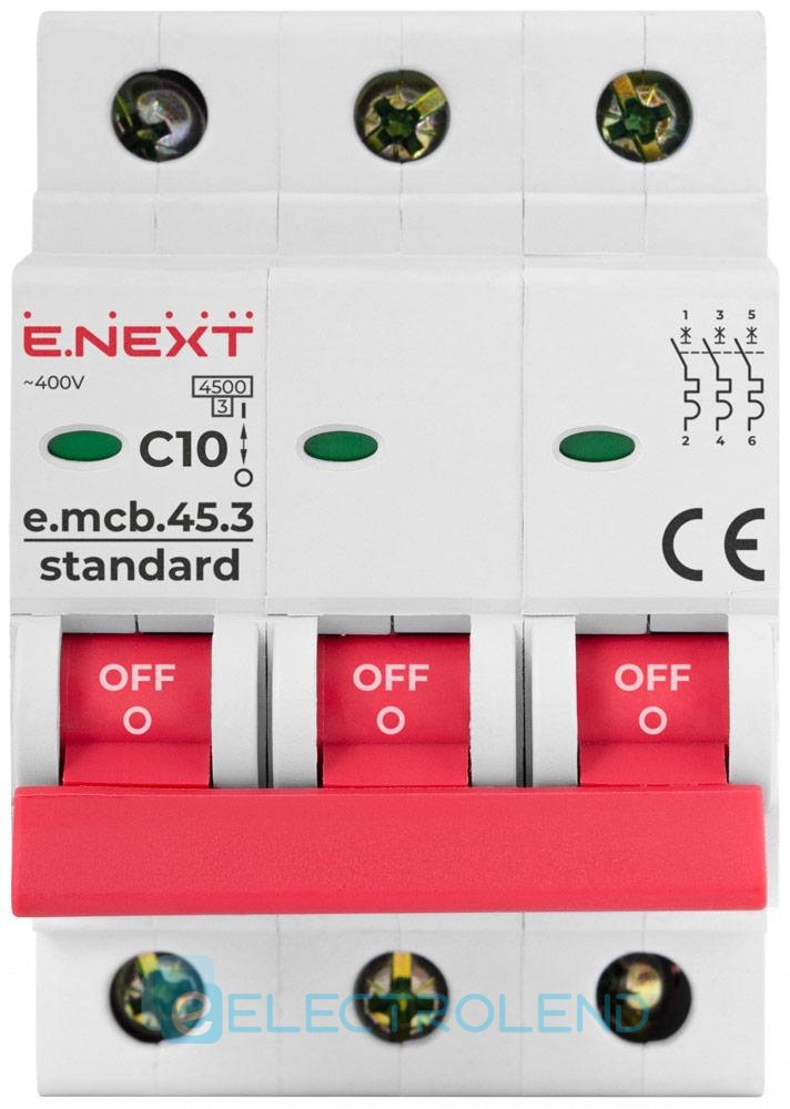 S002030 Модульный автоматический выключатель e.mcb.stand.45.3.C10, 3р, 10А, C, 4,5 кА