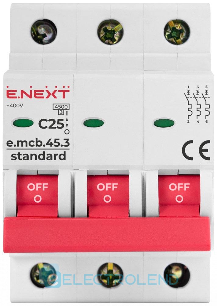 S002033 Модульный автоматический выключатель e.mcb.stand.45.3.C25, 3р, 25А, C, 4,5 кА