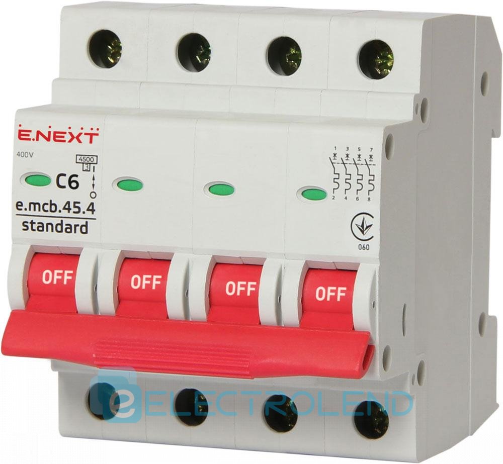 S002060 Модульный автоматический выключатель e.mcb.stand.45.4.C6, 4р, 6А, C, 4,5 кА