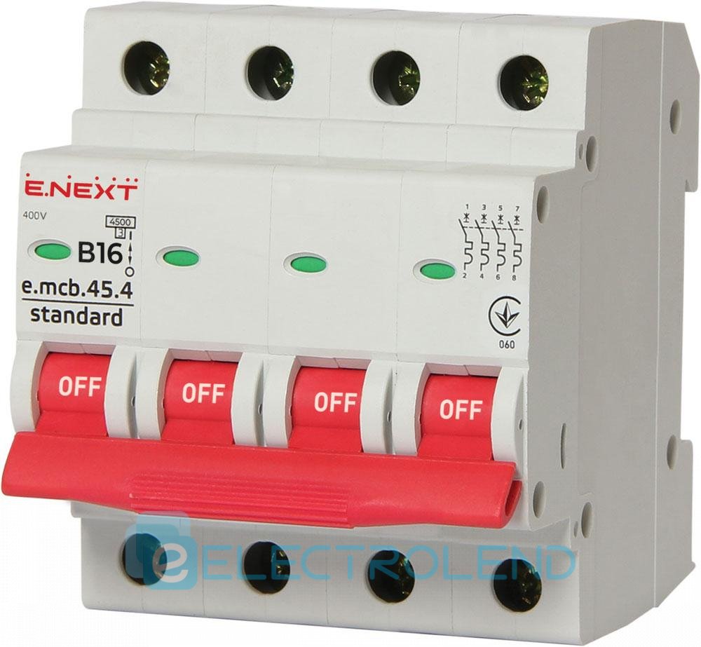 S001034 Модульный автоматический выключатель e.mcb.stand.45.4.В16, 4р, 16А, В, 4,5 кА