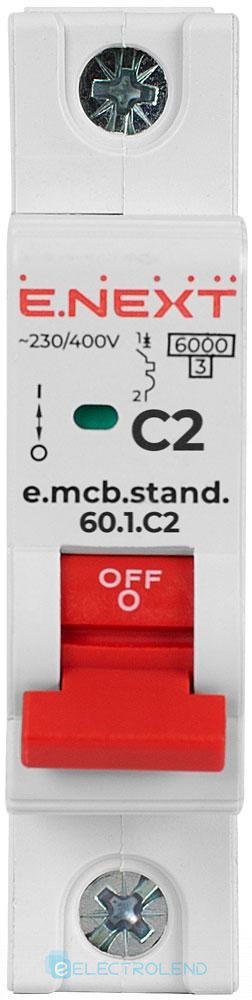 S002102 Модульный автоматический выключатель e.mcb.stand.60.1.C2, 1р, 2А, C, 6кА