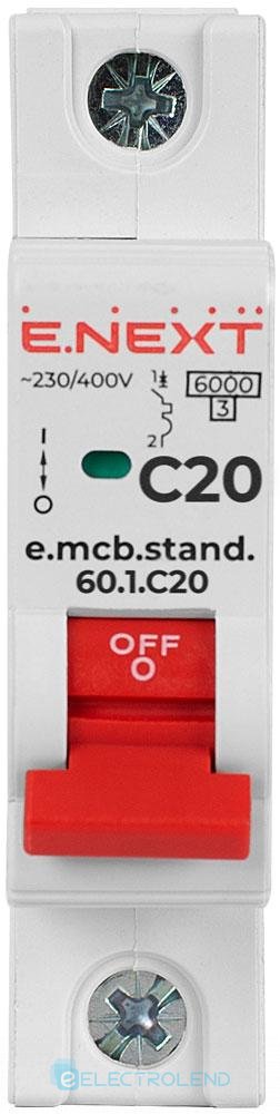 S002109 Модульный автоматический выключатель e.mcb.stand.60.1.C20, 1р, 20А, C, 6кА
