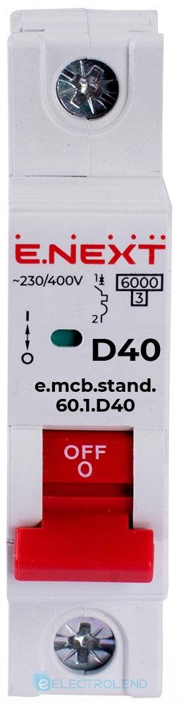 S026114 Модульный автоматический выключатель e.mcb.stand.60.1.D40, 1р, 40А, D, 6кА