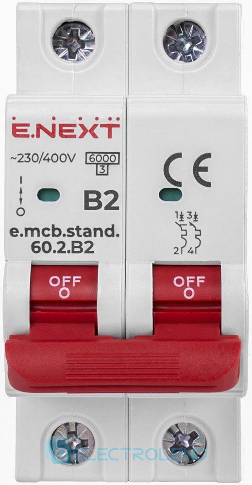 S001133 Модульный автоматический выключатель e.mcb.stand.60.2.B2, 2р, 2А, B, 6кА