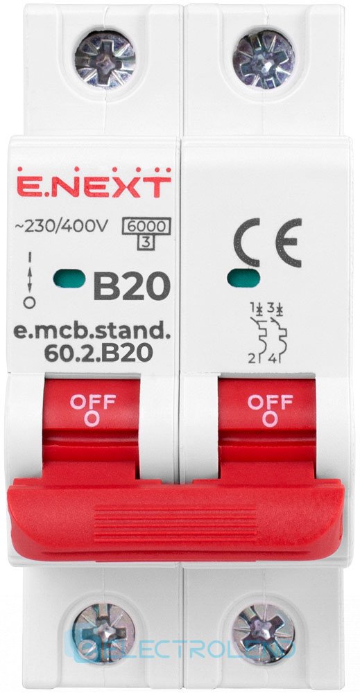 S001118 Модульный автоматический выключатель e.mcb.stand.60.2.B20, 2р, 20А, B, 6кА
