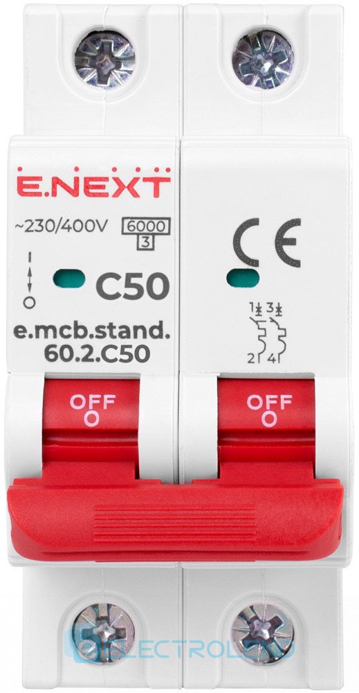 S002122 Модульный автоматический выключатель e.mcb.stand.60.2.C50, 2р, 50А, C, 6кА