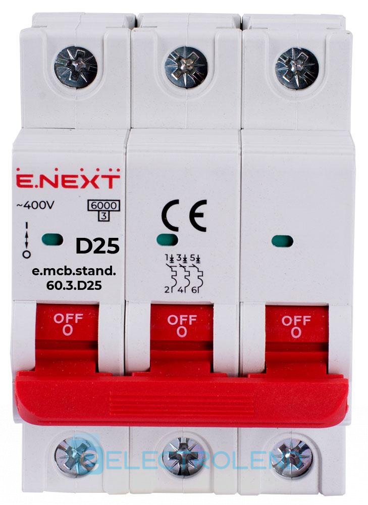 S026144 Модульный автоматический выключатель e.mcb.stand.60.3.D25, 3р, 25А, D, 6 кА