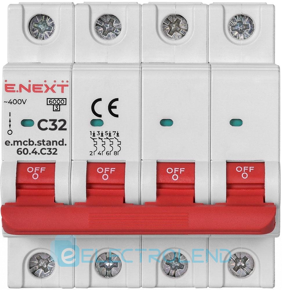 S002150 Модульный автоматический выключатель e.mcb.stand.60.4.C32, 4р, 32А, C, 6кА