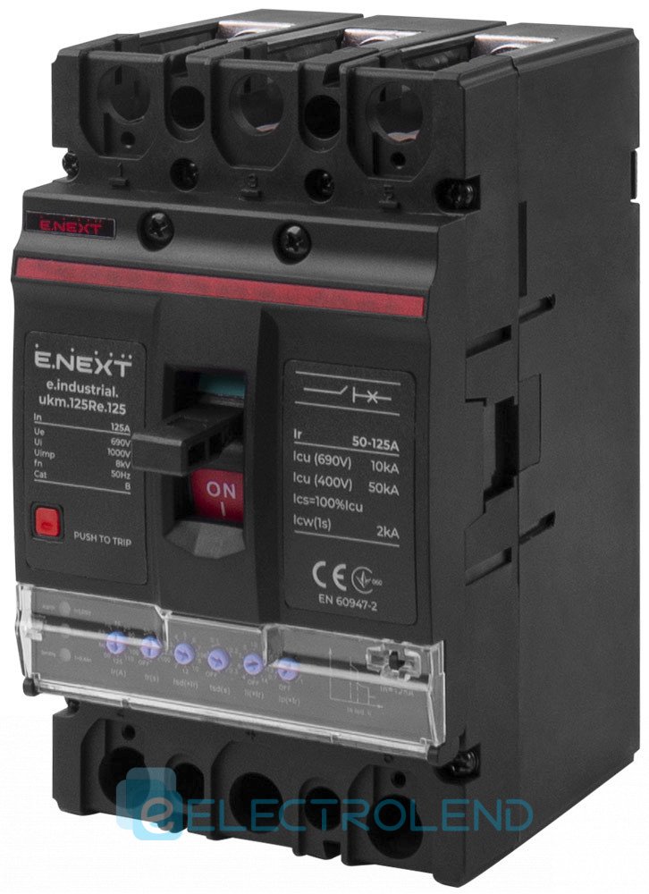 I0770056 Силовой автоматический выключатель e.industrial.ukm.125Re.125 с электронным расцепителем, 3р, 125А