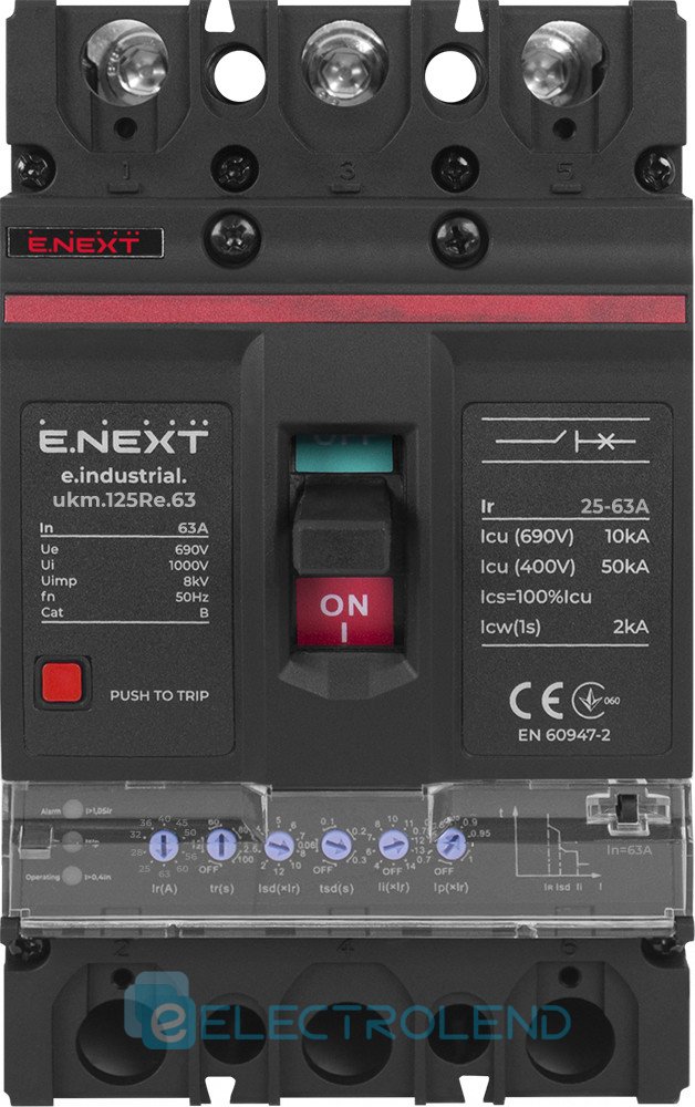 I0770055 Силовой автоматический выключатель e.industrial.ukm.125Re.63 с электронным расцепителем, 3р, 63А