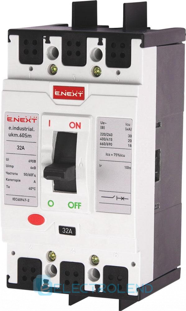 I0650004 Силовой автоматический выключатель e.industrial.ukm.60Sm.32, 3р, 32А