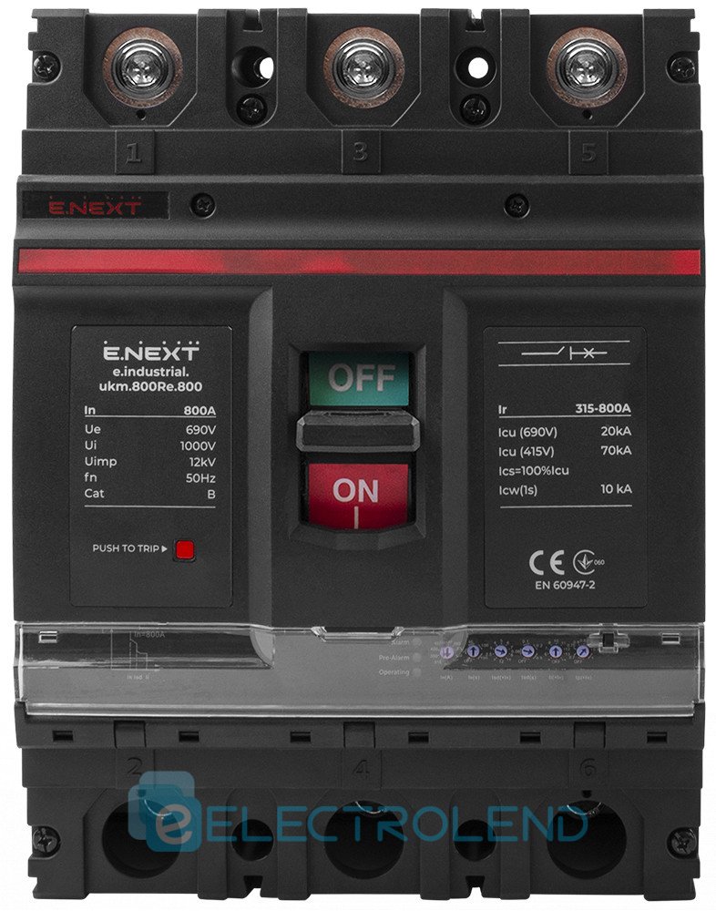 I0770025 Силовой автоматический выключатель e.industrial.ukm.800Rе.800 с электронным расцепителем, 3р, 800А