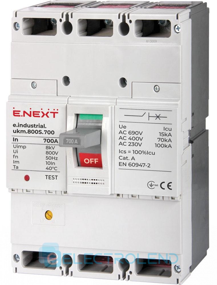 I0010029 Силовой автоматический выключатель e.industrial.ukm.800S.700, 3р, 700А