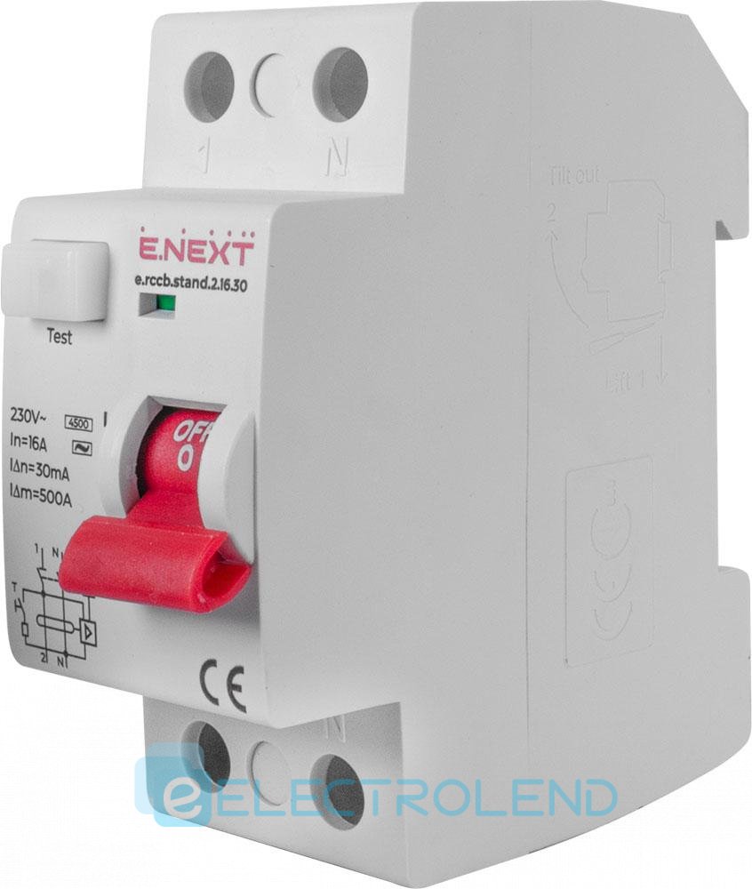S034011 Выключатель дифференциального тока e.rccb.stand.2.16.30 2р, 16А, 30mA