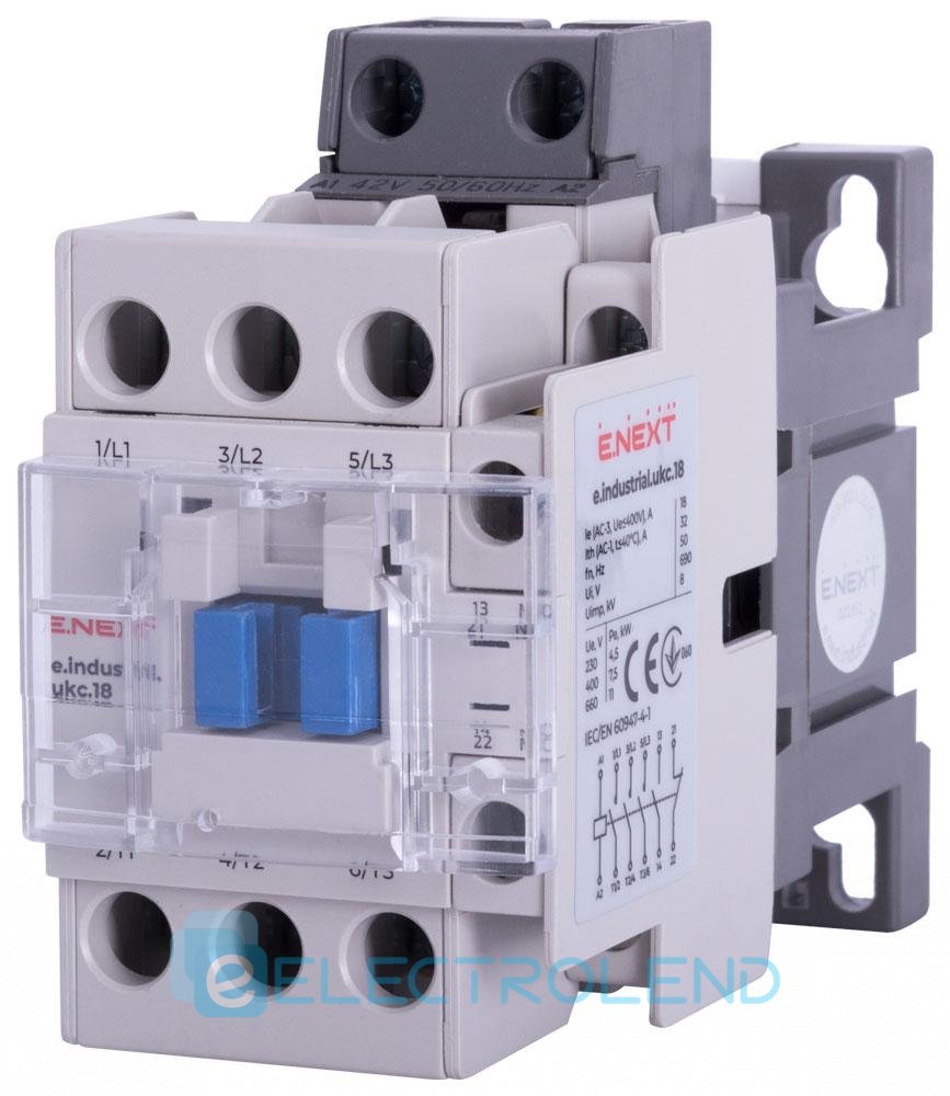I.0090075 Контактор e.industrial.ukc.18.42, 18A, 42В, 1no+1nc
