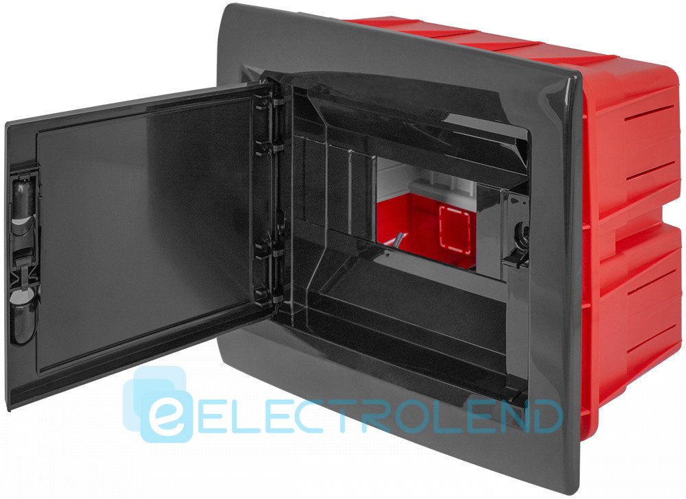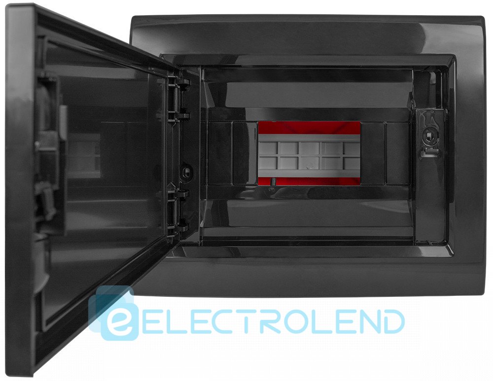 CP12908B Корпус пластиковый на 8 модулей e.plbox.pro.w.08b.black встроенный, черный с непрозрачной дверцей