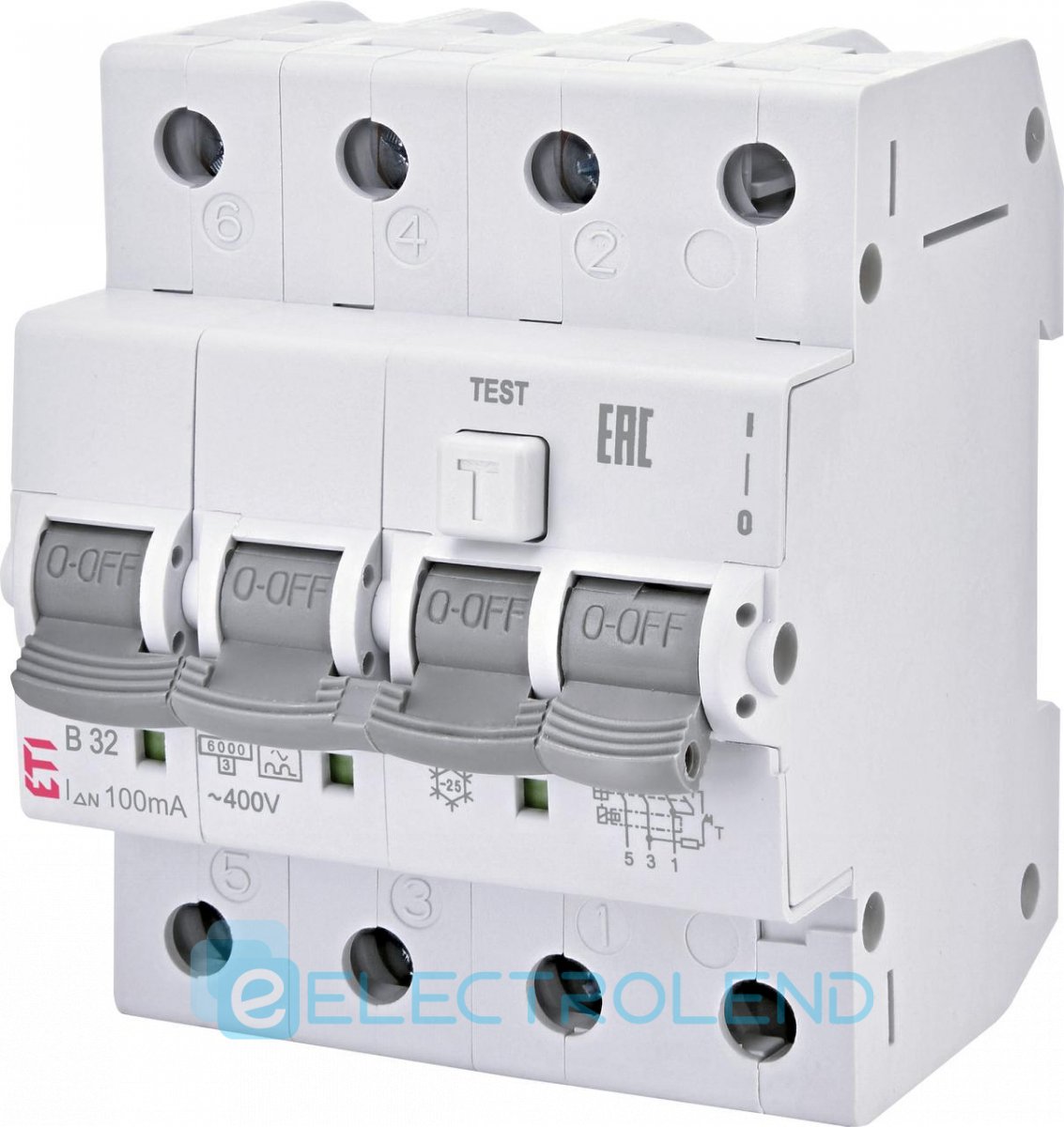 2174027 Дифференциальный автомат KZS-4M 3p+N C 32/0,03 тип AC (6kA) ETI