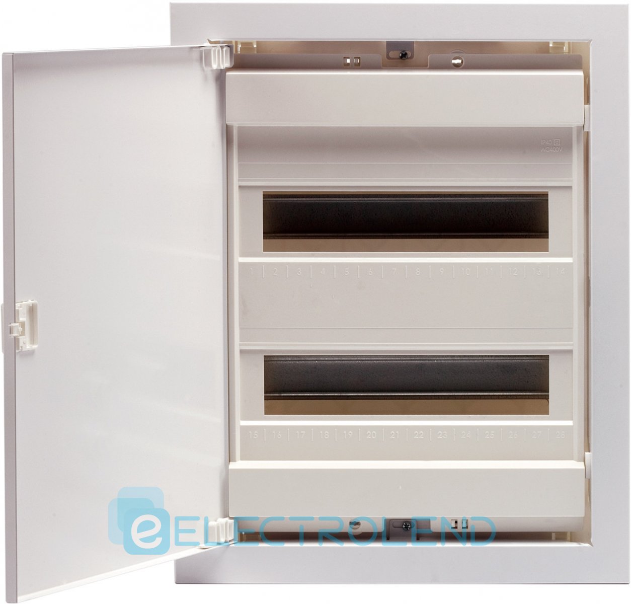 1101184 Щит металлопластиковый ECG28 PO (24+4мод., пластик.белые.дверцы) ETI