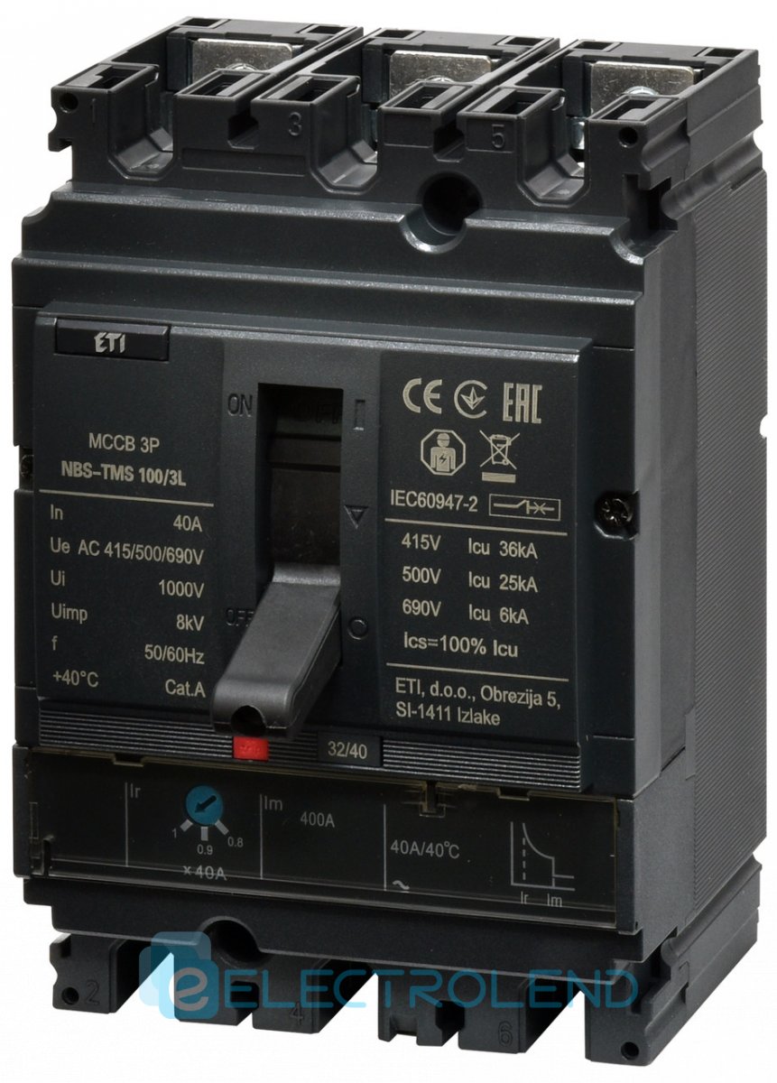 4673003 Авт. выключатель NBS-TMS 100/3L 40A (36kA, (0.8-1)In/фикс.) 3P ETI