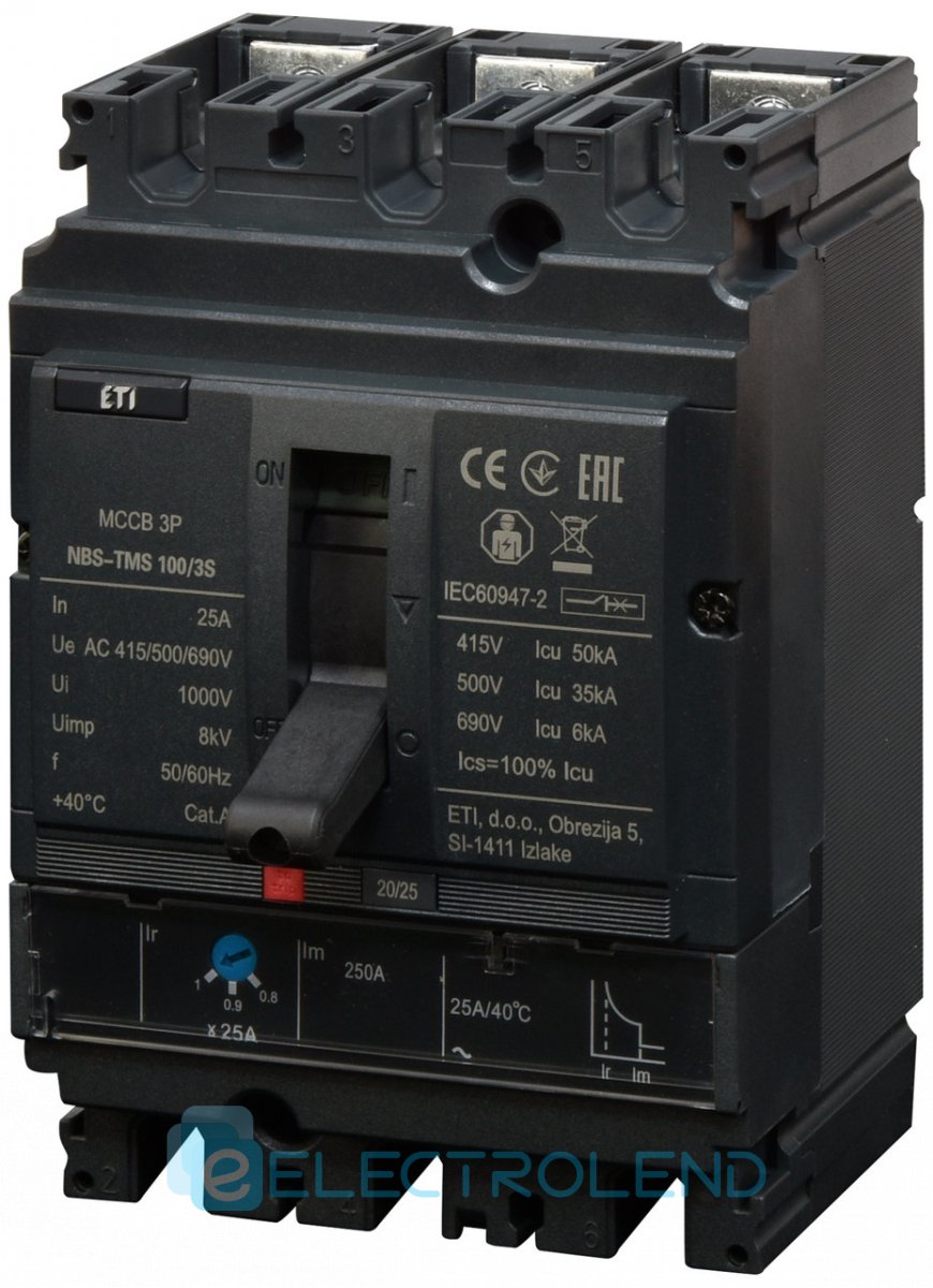 4673030 Авт. выключатель NBS-TMS 100/3S 25A (50kA, (0.8-1)In/фикс.) 3P ETI