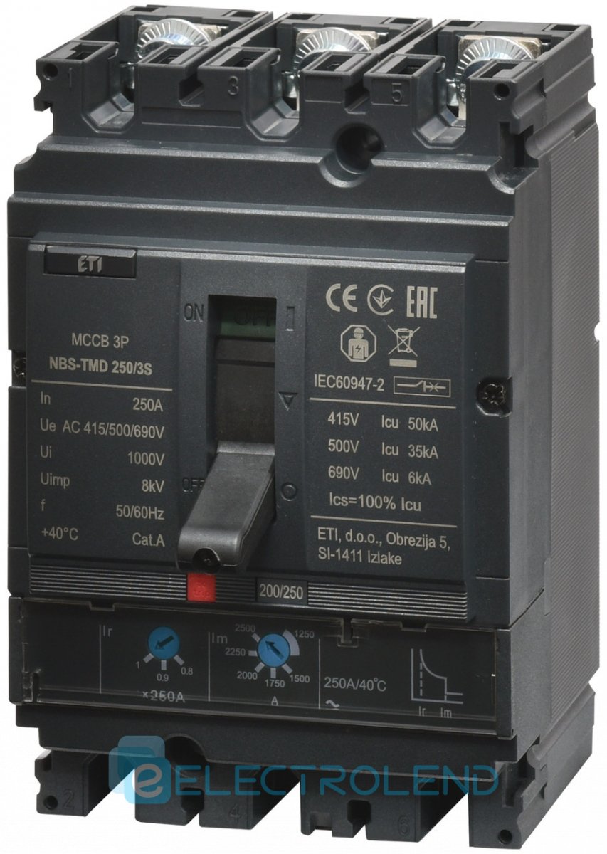 4673076 Авт. выключатель NBS-TMD 250/3S 250A (50kA, (0.8-1)In/(5-10)In) 3P ETI