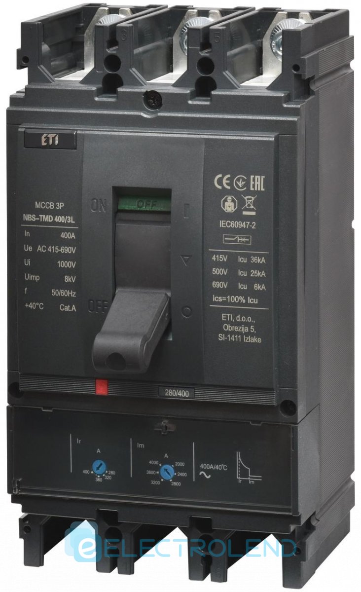 4673102 Авт. выключатель NBS-TMD 400/3L 400A (36кА, (0.7-1)In/(5-10)In) 3P ETI