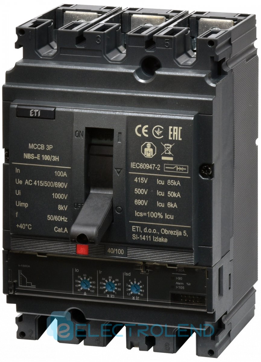 4673045 Авт. выключатель NBS-E 100/3H 100A (85kA, (0.4-1)In/(1.5-10)Ir) 3P ETI