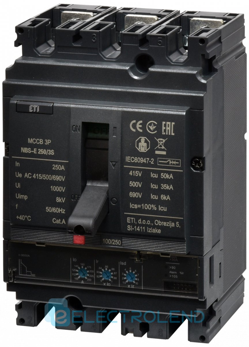 4673081 Авт. выключатель NBS-E 250/3S 250A (50kA, (0.4-1)In/(1.5-10)Ir) 3P ETI