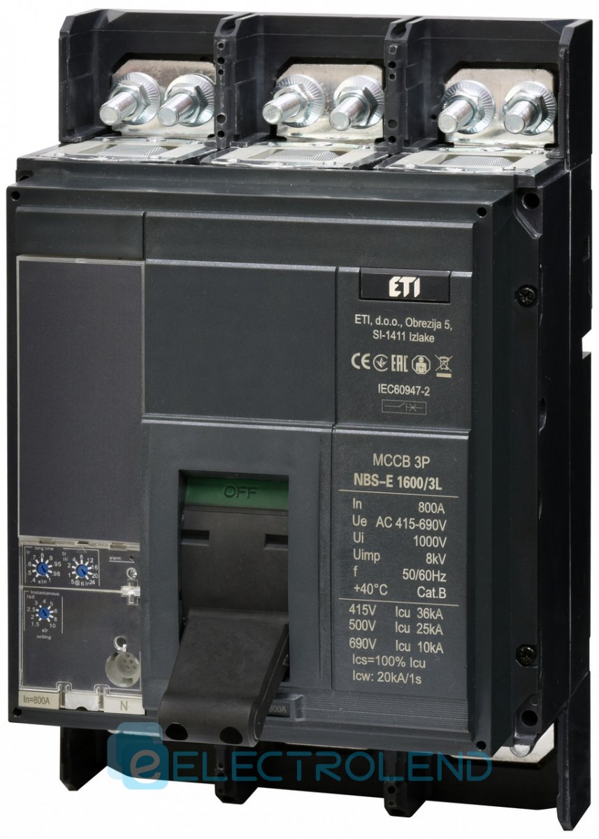 4673160 Авт. выключатель NBS-E 1600/3L 800A (36kA, (0.4-1)In/(1.5-10)Ir) 3P ETI