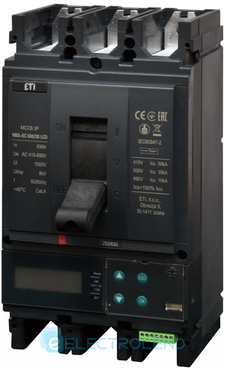 4673151 Авт. выключатель NBS-EC 630/3S LCD 630A (50kA, (0.4-1)In/(1.5-12)In) 3P ETI