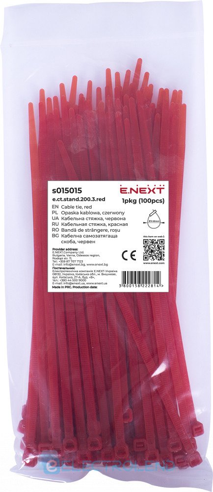 s015015 Кабельная стяжка e.ct.stand.200.3.red (100шт), красная