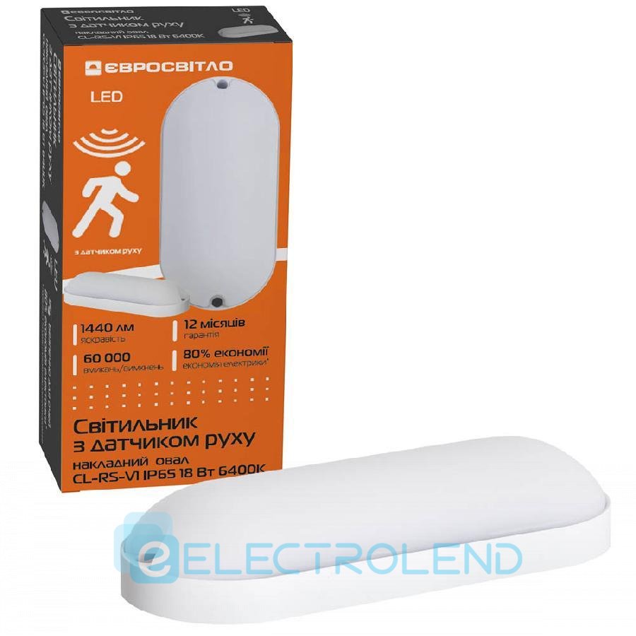 Светильник с датчиком движения LED накладной Євросвітло овал CL-RS-V1 IP65 18 Вт 6400К 000059216