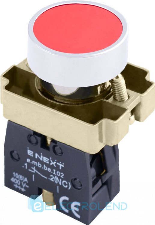 Кнопка без подсветки плоская e.mb.ba42 красная, без фиксации, 1NС p0810110