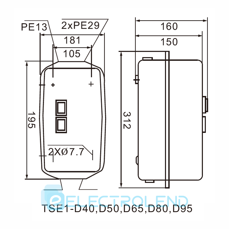 Магнитный пускатель TSE1-D40 40А катушка AC220-230V (30A-40A) в корпусе IP54 TOSUNLux