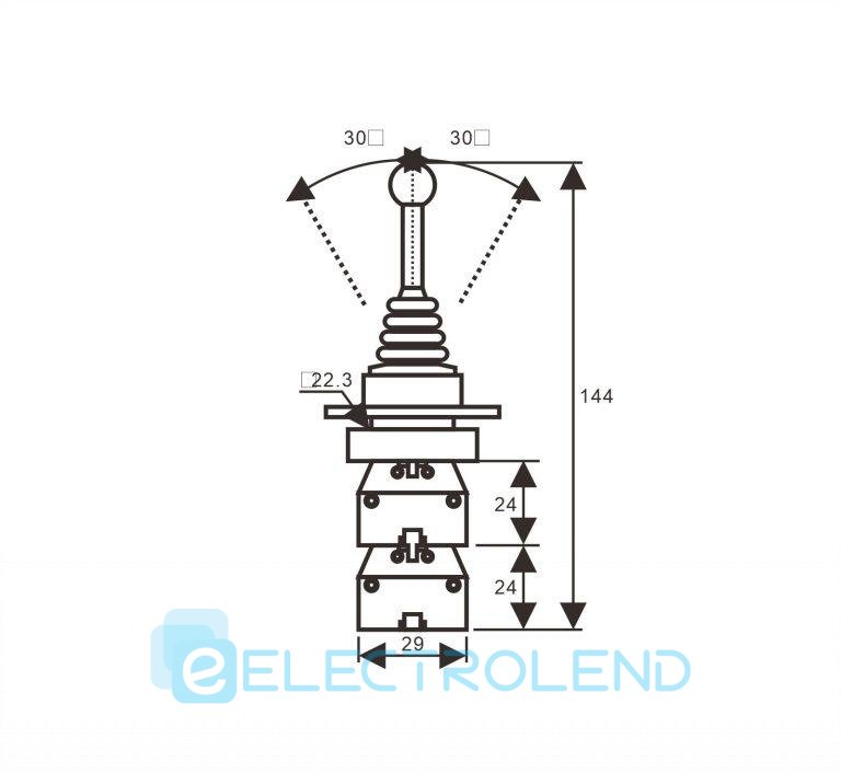 Кнопка-манипулятор PB2-PA14, фиксация 4 направления, Ø22mm, 2NO+2NC AC 230/400B TOSUNLux