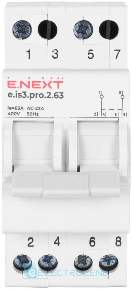 p008014 Выключатель на DIN-рейку на три положения e.is3.pro.2.63, 2р, 63А E.NEXT