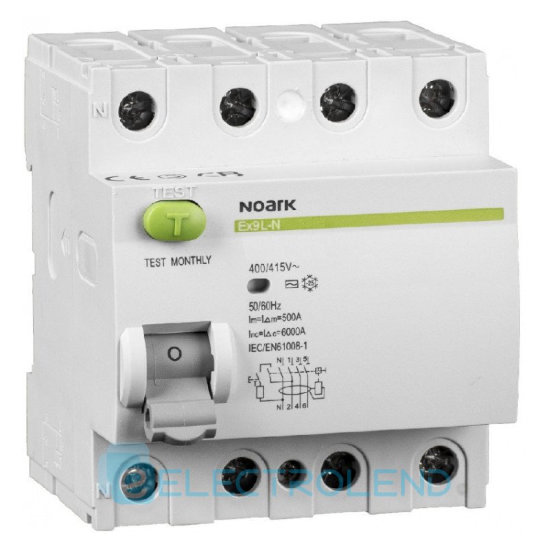 Дифференциальный выключатель (УЗО), Icn=6kA, 4P, In=63A, IΔn=300mA, тип AC Ex9L-N 108341 NOARK
