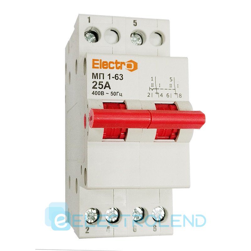Переключатель нагрузки трехпозиционный МП1-63 2P 25A I-0-II 230B/400B Electro