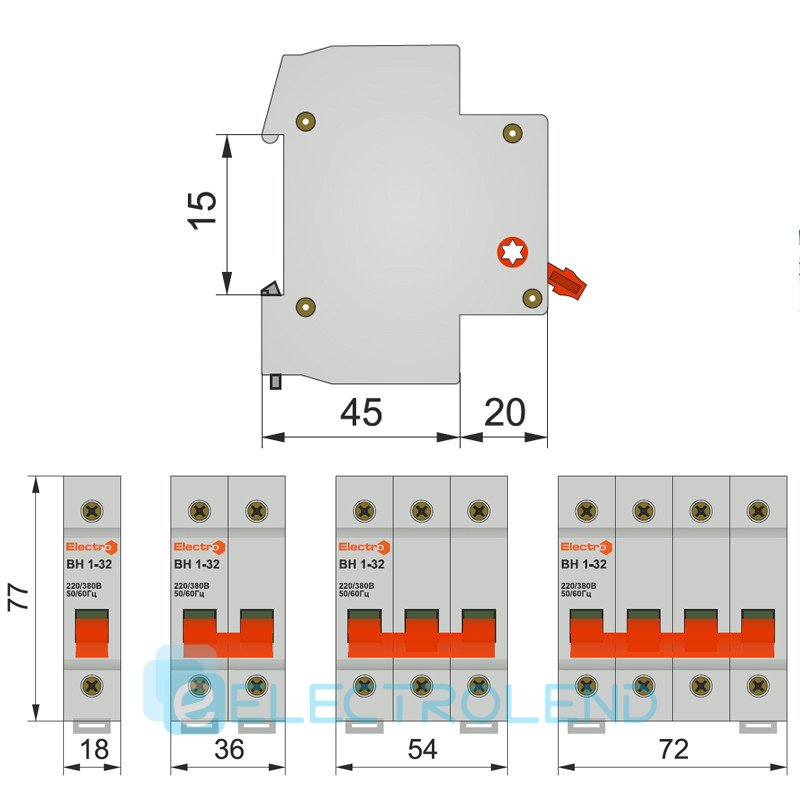 Выключатель нагрузки ВН1-32, 230/380В, 3Р 100A 230B/400В Electro
